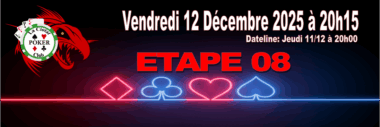 ÉTAPE 6 – “MTT9 classique”, Le président a commencé à nous annoncer que l’événements Pokerthon qui aura lieu le samedi 06 décembre est complets. Il nous annonce dans les grandes lignes le fonctionnement de la journée. Profite de remercier son staff pour l’organisation et le travail déjà accompli. Ligue des clubs Winamax, belle performance de